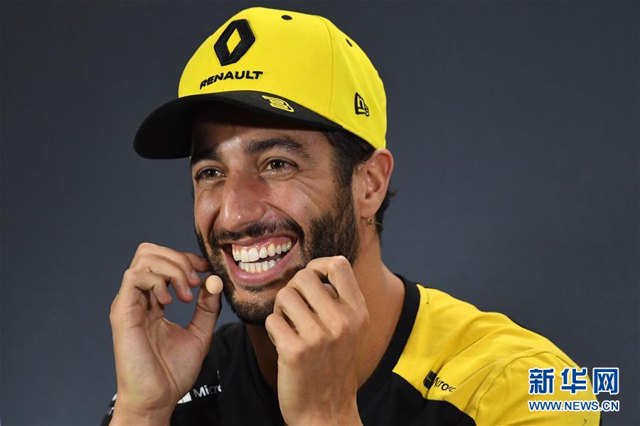 9月19日,雷诺车队澳大利亚车手里卡多在发布会上。 当日,F1新加坡大奖赛车手赛前发布会在新加坡举行。F1新加坡大奖赛将于9月20日至22日举行。 新华社发(邓智炜摄)