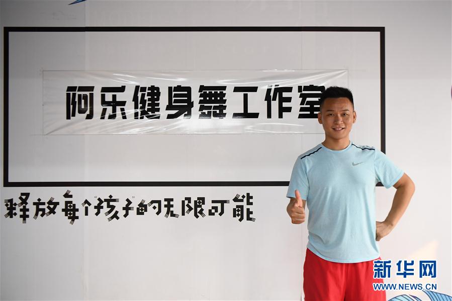 身材高大健硕,短发清爽利落,脸上常挂着笑容……初见沙正乐,完全无法想象这个35岁的帅小伙儿是个广场舞教练。 作为全国广场舞推广大使、湖南省体育舞蹈协会的常务委员,沙正乐曾带着大姐们代表湖南省参加全国广场舞北京集中展演。谁能想到,两年前,他还是一名教了十几年美术的高中老师。 出生于安徽六安的沙正乐,大学毕业就来到湖南株洲北师大附中任教。由于大学时选修过健美操,工作后他又常常去健身房打发时间。一位教练觉得他健身舞跳得不错,有意培养他,并逐渐让他在健身房兼职教授健身舞。从那以后,沙正乐跑遍了株洲大大小小的健身房兼职。 2012年,沙正乐受托帮一支广场舞队伍编排舞蹈参加株洲市的广场舞大赛,这是他第一次接触到广场舞。起初,沙正乐总觉得广场舞与抢地盘、扰民、不上档次这些词语挂钩,和他“八竿子打不着”。但在和广场舞大姐们的接触中,他慢慢被她们的认真、努力、乐观所感染,加之广场舞相关规范逐渐出台,沙正乐改变了对广场舞的印象,开始主动参与其中。 2016年,沙正乐组建了“阿乐健身舞蹈队”,并义务带领大家跳舞。2017年,他的队伍代表湖南省参加“谁是舞王”全国广场舞大赛,由于参赛时间与工作相冲突,沙正乐狠心辞掉了工作,成了专职广场舞教练。 辞职的头半年里,沙正乐的收入锐减,他却找父母借了两万元辗转全国各地学习,以期缩小和专业舞蹈老师的差距。之后,沙正乐的全职教练工作逐渐走上正轨,他也没有停下学习的脚步,自学考取了国家级社会体育指导员和国家级广场舞教练员、裁判员。现在,沙正乐有了自己专业的课程和教学视频,甚至吸引了株洲不少80后、90后加入他的广场舞队伍。 “只要一跳舞,大姐们腰不酸了、腿不疼了,脸上的笑容也没有停过。把健康和快乐带给更多人,也是我们年轻人的使命。”沙正乐说。 这是10月5日在沙正乐的“阿乐健身舞工作室”拍摄的沙正乐。 新华社记者薛宇舸摄