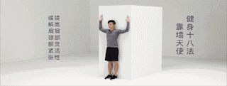 靠墙天使,该动作可以提高肩部灵活性和肩胛稳定性,缓解肩颈部紧张。其动作要领是:背部紧靠墙壁,外展打开双臂,贴墙缓缓而上,徐徐回到原状。
