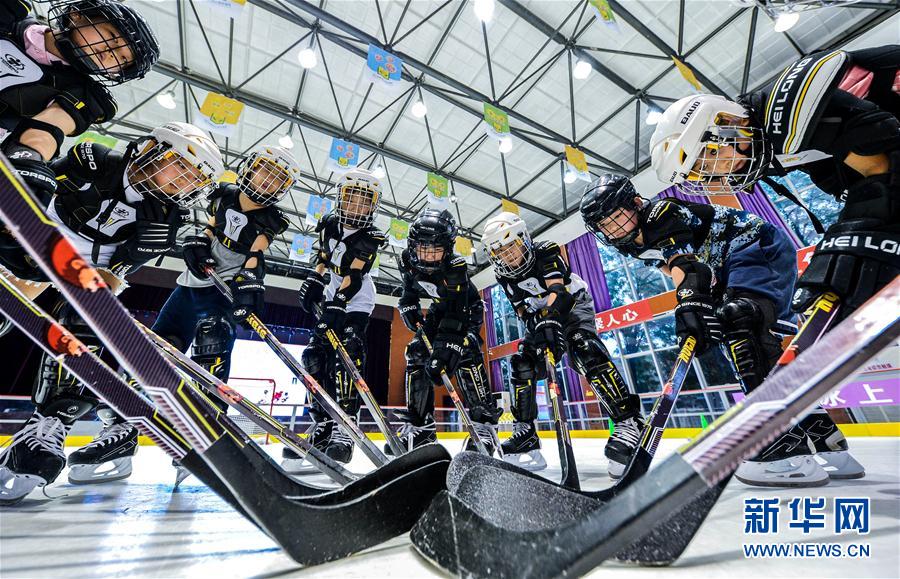 8月5日,冰球队的队员在仿真冰场热身训练。 正值暑期,河北省邯郸市邯山区美的小学冰球队在室内仿真冰场展开集中训练,在“冰场”上享受假期生活。2020年5月,河北省邯郸市邯山区建成一个500平方米的室内仿真冰场,冰场配建24米冰壶场地1块,配备冰球、滑冰装备100套,为当地喜欢冰上运动的青少年提供了方便。 新华社记者 王晓 摄