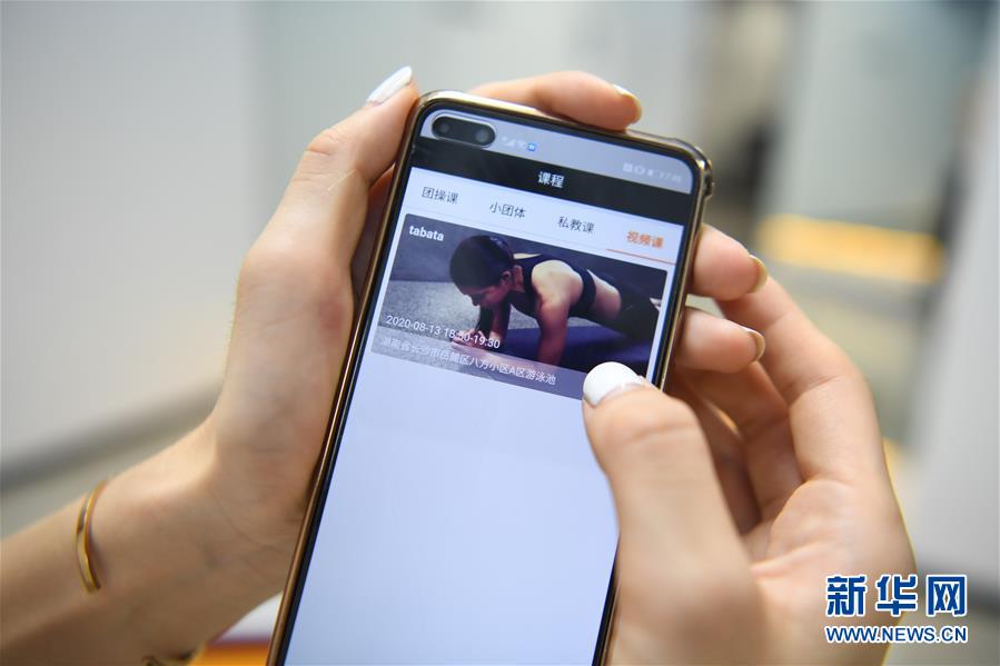 8月12日,在位于长沙市岳麓区的一家智慧社区健身中心内,市民通过手机软件选择视频课并预约前往操课区锻炼的时间。 据了解,长沙市已有首批10家惠民的智慧社区健身中心向市民开放。这批健身中心是由政府出资建设、小区提供非商业闲置空间、企业专业运营的公益健身场所。健身中心设有独立的有氧区、固定力量区、自由力量区、操课区、体测区等健身区域,并提供线上视频教学和线下教练预约,方便市民利用碎片化时间在家门口享受低价、高质、便捷的健身服务。 新华社记者 薛宇舸 摄