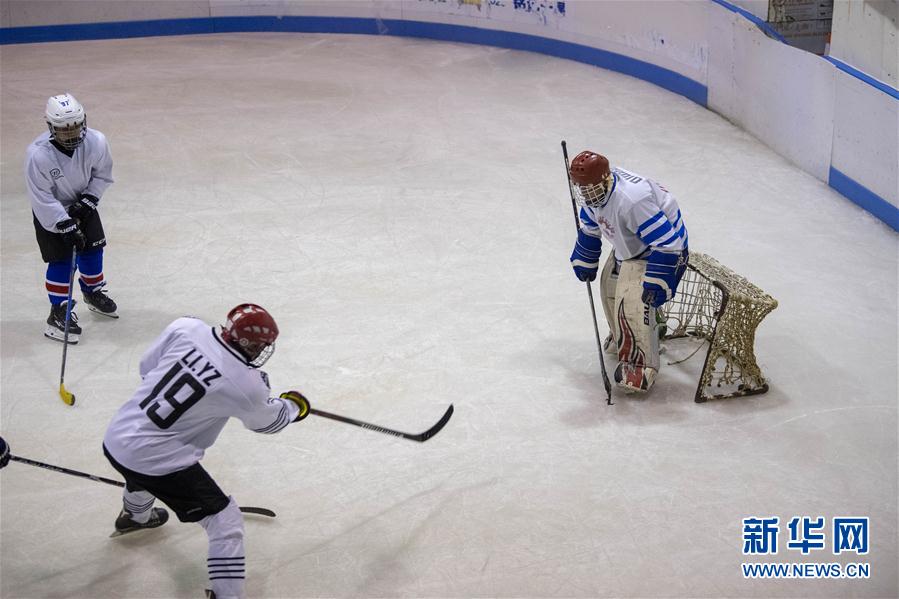 今年85岁的武之乃是山西太原人,自小就接触冰雪运动的他,“冰龄”接近80年,冰球早已成为了他生活中不可或缺的一部分。 1957年,武之乃从山西大学体育系毕业,到太原市第十二中学从事体育教学。为了培养学生们的兴趣爱好,武之乃开设了滑冰课程。他还赴各地接受专业滑冰培训,积极推广冰上运动。 1999年,早已退休的武之乃联合一些球友共同成立了太原北极熊冰球队,并担任领队至今。北极熊冰球队现有成员30余人,平均年龄近50岁。随着年龄的不断增长,武之乃在球场上的位置从后卫变成了守门员。但他说,不变的是他对冰雪运动的热爱。 为了迎接2022年冬奥会,武之乃正在整理自己收藏的山西冰雪运动资料,打算捐给山西体育博物馆。“希望更多的年轻人参与到冰雪运动中来,为全国冰上运动发展贡献自己的力量”,武之乃说。 这是武之乃(右)在分组对抗训练中(2020年8月13日摄)。 新华社记者 杨晨光 摄