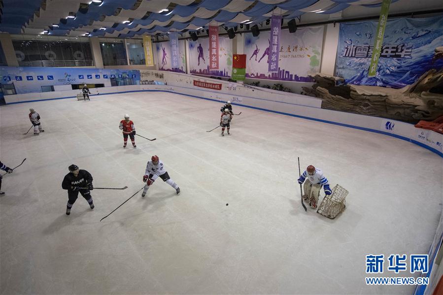 今年85岁的武之乃是山西太原人,自小就接触冰雪运动的他,“冰龄”接近80年,冰球早已成为了他生活中不可或缺的一部分。 1957年,武之乃从山西大学体育系毕业,到太原市第十二中学从事体育教学。为了培养学生们的兴趣爱好,武之乃开设了滑冰课程。他还赴各地接受专业滑冰培训,积极推广冰上运动。 1999年,早已退休的武之乃联合一些球友共同成立了太原北极熊冰球队,并担任领队至今。北极熊冰球队现有成员30余人,平均年龄近50岁。随着年龄的不断增长,武之乃在球场上的位置从后卫变成了守门员。但他说,不变的是他对冰雪运动的热爱。 为了迎接2022年冬奥会,武之乃正在整理自己收藏的山西冰雪运动资料,打算捐给山西体育博物馆。“希望更多的年轻人参与到冰雪运动中来,为全国冰上运动发展贡献自己的力量”,武之乃说。 这是武之乃(右一)在分组对抗训练中守门(2020年8月13日摄)。 新华社记者 杨晨光 摄