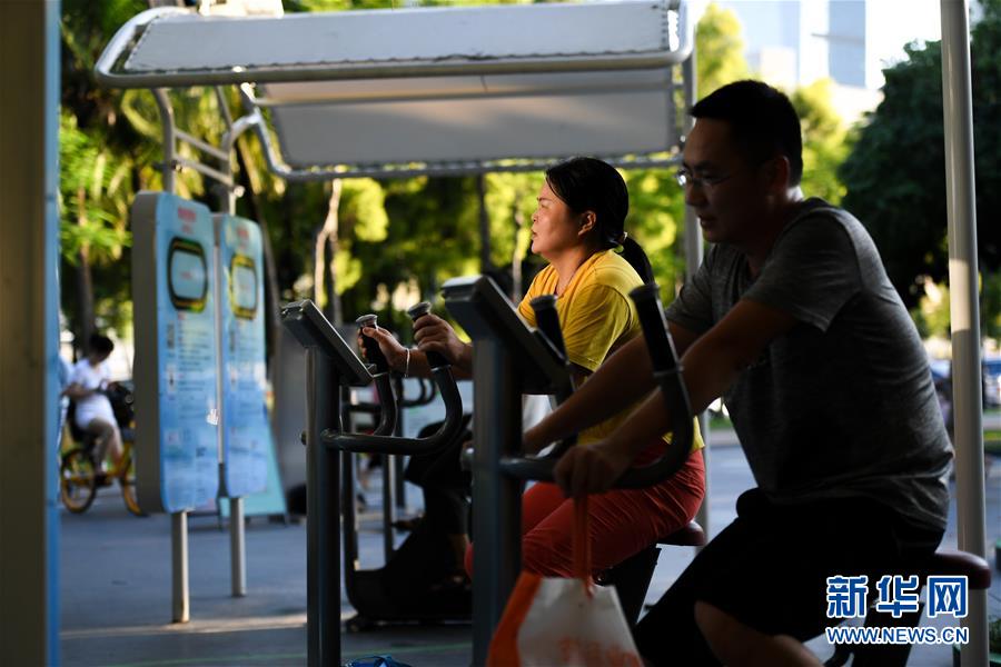 8月13日,市民在深圳市中心公园使用智能竞赛车锻炼。 在广东深圳核心区域的中心公园里,有一座占地面积约800平方米的“智能健身房”,自2019年底面向公众开放以来,每天吸引上千人次前来锻炼。整个室外“智能健身房”按照功能区分,包括体质测试区、心肺功能和力量训练区、智能竞赛区、热身和放松区等六个区域,不同区域满足不同功能的训练和测试。来锻炼的市民扫描设备上的二维码,可通过小程序获取运动数据。市民在运动时也可随时观察到消耗热量等即时数据。 新华社记者毛思倩摄