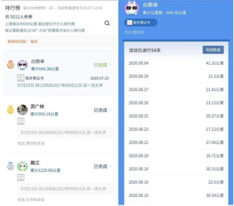 白鹏皋参加川大线上跑活动的打卡截图。受访者供图