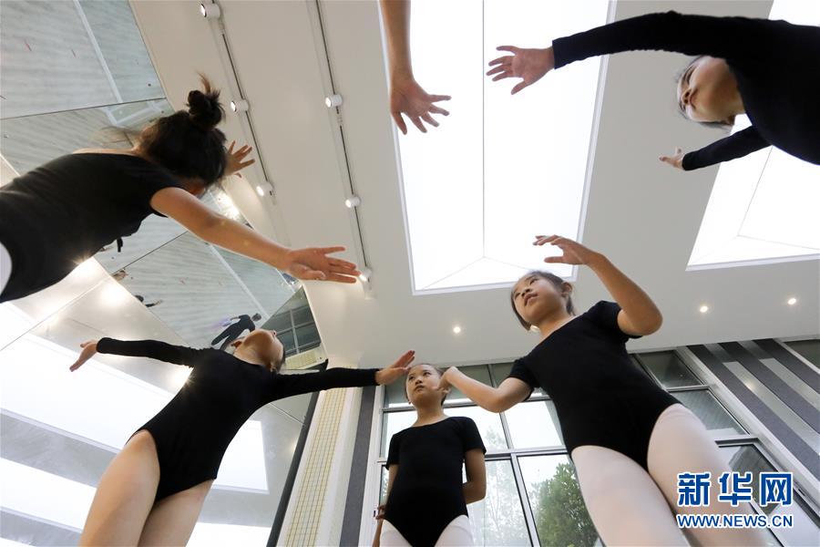 9月23日,石箐宸(右二)与同学们一起进行动作训练。 今年9月,贵阳市向阳实验小学与培训机构合作,推出艺术体操进校园活动。目前,该校艺术体操队已有7名队员,一周进行三次训练,队员们在挥洒汗水间享受体操带来的乐趣。 新华社记者欧东衢摄