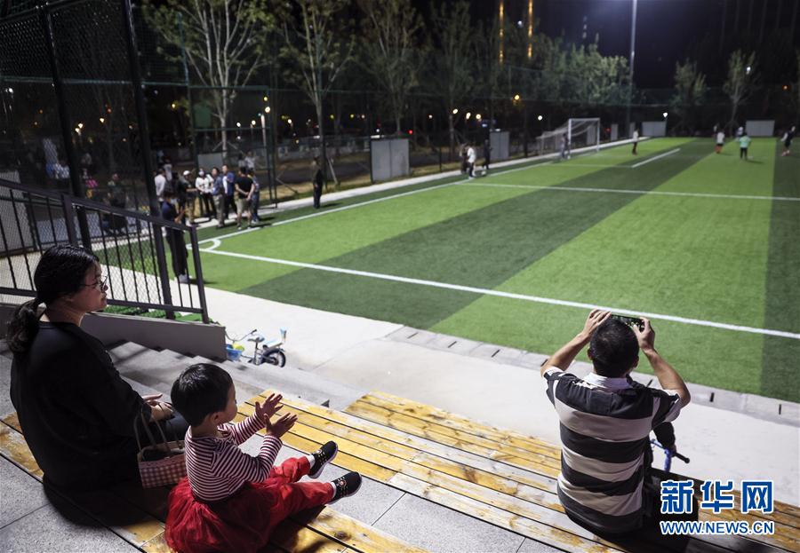 9月28日,一位小朋友在妈妈的带领下,在日照香河体育公园足球场为场上踢球的爸爸加油。 近年来,山东省日照市将体育作为打造精致城市、活力之城的重要组成部分和提高人民获得感、幸福感的重要民生事业。作为一个年轻的海滨开放城市,日照具备开展体育运动的天时、地利、人和。在城市发展中,坚持全民参与、全民共建、全民共享,把体育摆到城市规划的重要位置,拿出最好的区域、最贵的地段建设了一流的体育设施。办体育,就是办发展、办民生、办生态。而推进全民健身运动发展,就是让广大群众享受体育红利最便捷、直接、高效的方式。 今年,日照被确定为国家体育消费试点城市,省、市发放近200万元体育消费券,撬动全市40余家健身俱乐部、体育场馆发放1.1亿元体育优惠券、健身体验卡和赛事门票等健康大礼包,激发市民健身消费热情,让体育消费也迎来了“晚高峰”和“加时赛”。 在日照从海边小城到现代化海滨城市的升华历程中,体育,早已融为城市脉搏,跳动沸腾,活力昂扬。体育产业必将更加惠民,成为打造“健康日照”的新名片。 新华社记者 兰红光 摄