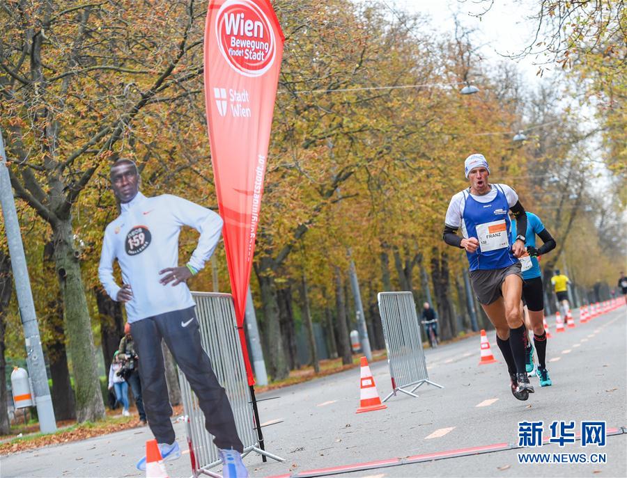 10月12日,选手们在比赛中。 当日,奥地利首都维也纳举办向肯尼亚马拉松运动员基普乔格成功挑战马拉松2小时致敬的一周年马拉松赛。2019年10月12日,马拉松世界纪录保持者、肯尼亚著名长跑运动员埃鲁德·基普乔格在奥地利首都维也纳的“1:59挑战”中以1小时59分40秒的成绩完赛,成为世界上第一位跑进两小时大关的马拉松选手。本次致敬比赛在去年基普乔格挑战赛的地点维也纳普拉特林荫大道举办,吸引了不少马拉松爱好者前来参赛。 新华社记者 郭晨 摄