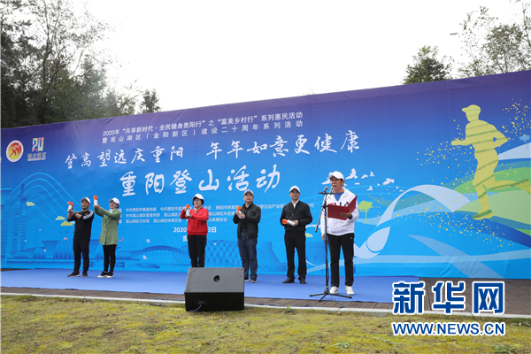 新华网贵阳10月23日电(周远钢)10月23日,在重阳节到来之际,一场以“登高望远庆重阳,年年如意更健康”为主题的登山活动在贵阳市观山湖区朱昌镇举行,本场活动是2020年“共享新时代•全民健身贵阳行”之“富美乡村行”系列惠民活动的第三场活动。