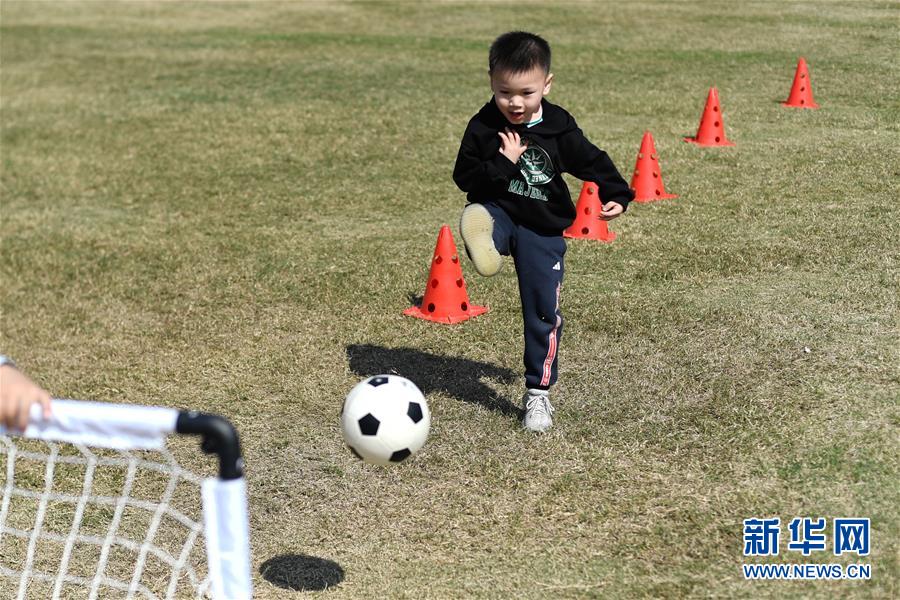 10月24日,一名小朋友在莫干山户外运动嘉年华主会场踢足球。 当日,浙江省第二届户外运动大会暨莫干山户外运动嘉年华在德清县莫干山镇开幕,本次活动以“运动浙江 户外天堂”为主题,将于10月25日闭幕。 新华社记者 黄宗治 摄