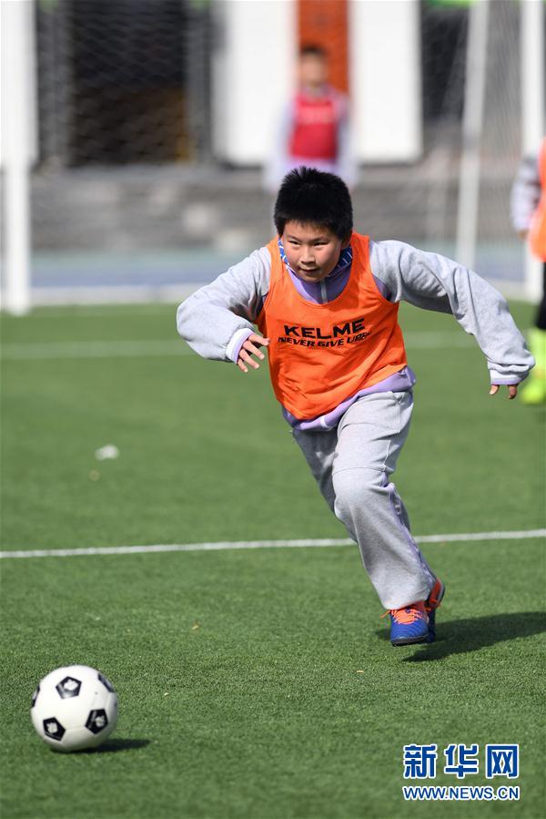 10月27日,五年级6班球员袁靖程在足球嘉年华班级联赛上带球进攻。 近期,北京市海淀区双榆树第一小学开展“育·树”阳光校园足球嘉年华班级联赛活动。本次班级联赛采用同年级单循环积分赛制,每个年级组获得积分最高的班级获得该年级组冠军,比赛将持续至12月初。 新华社记者 任超 摄