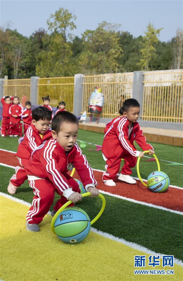 10月28日,萌娃们在参加球类运动项目。 当日,江西省新余市蓓蕾幼儿园举办秋季运动会,来自小班的萌娃们参加了多项趣味十足的项目,享受运动乐趣。 新华社发(赵春亮 摄)