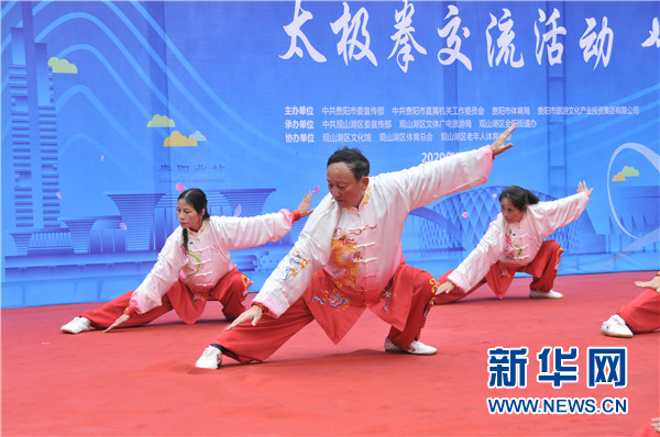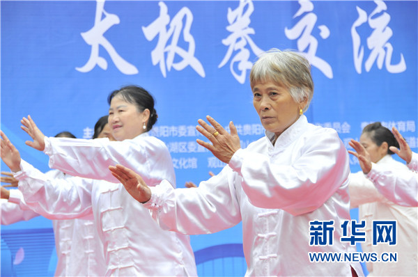 参加此次交流活动的太极拳爱好者在表演。新华网 周远钢 摄
