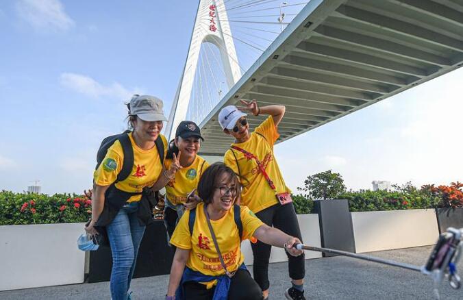 10月31日,参加健步走的群众行走在海口市海口湾。当日,2020海南万人健步大会在海口举行,逾万名群众参与其中。