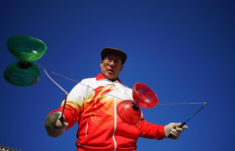 11月3日,空竹爱好者在河北省唐山市丰南区东田庄乡王打刁村村民活动广场抖空竹。 近年来,河北省唐山市丰南区加快建设农村健身场地设施,广泛开展丰富多彩的健身体育活动。目前全区已有各类体育场地1211块,文体队伍483支,全民健身让乡村更有活力。