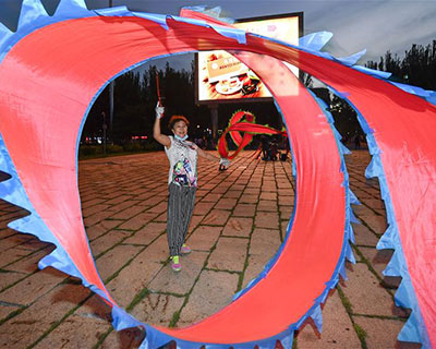 入夏以来,每当傍晚时分,许多爱好健身彩绸舞的市民都会来到长春市文化广场舞动彩绸、运动健身。伴着清凉晚风,飞舞的彩绸形成一道美丽的风景。