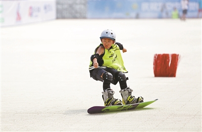 其实这些滑雪模拟训练仪器来到北京市民中间也只有一年左右的时间,这一切还要从去年北京市滑雪协会举办的京津冀青少年夏季滑雪挑战赛说起。为了丰富孩子们在非雪季的滑雪体验,相关主管部门组织了“特殊”的比赛,千余名青少年在各种滑雪模拟器械上完成了一场又一场的比拼。对此,北京市滑雪协会主席李晓鸣表示:“去年之前,我们在这个方面是空缺的,要想在非雪季体验滑雪并保持身体状态,雪友除了去仅有的几个室内滑雪场外,大多数人可能只能选择旱雪场地。不过从去年的挑战赛之后,人们开始接触这些辅助器材,这样一种新的方式同样可以帮助他们训练肌肉力量和滑雪基础动作,这是很科学且有效的方式。”