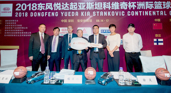 2018东风悦达起亚斯坦科维奇杯洲际篮球赛将于8月14日至17日在深圳市宝安体育馆举行。本届赛事采用单循环制,每天两场比赛,最后一个比赛日先后决出三、四名及冠亚军。除中国国家男篮蓝队外,还有克罗地亚、芬兰和突尼斯三支国家队参赛。