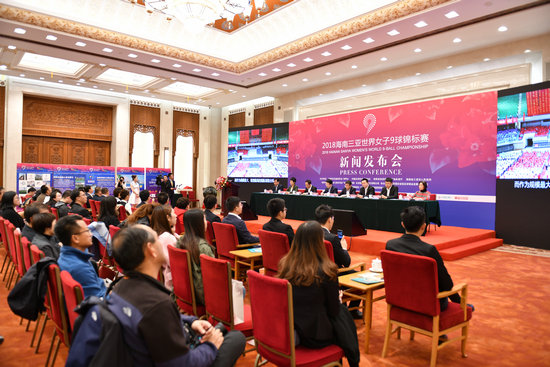 10月30日下午,2018世界女子9球锦标赛新闻发布会在北京人民大会堂举行。