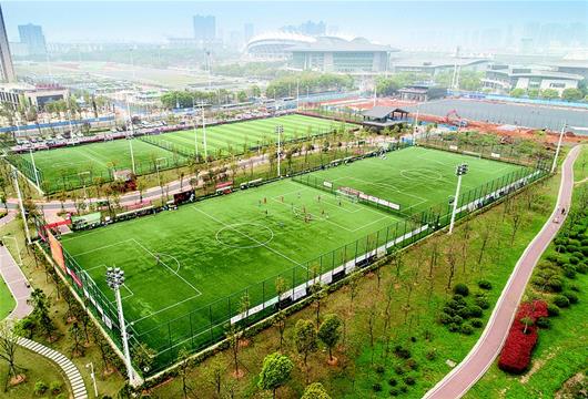 毗邻武汉体育中心,武汉城市足球公园共14片足球场,占地约20万平方米,是华中地区单体规模最大、配套设施最全的湖畔足球主题公园。足球公园与万达、永旺、湘隆等周边商圈功能互补,提供健身、购物、餐饮一条龙服务,聚集人气,拉动消费,是全民健身重要阵地。“在产城融合之路上,体育产业可以起到催化剂的作用。”武汉开发区相关负责人表示,城市发展的目的是为了让老百姓更有获得感、幸福感、安全感,依托丰富的体育资源,该区逐步建立起体育休闲、精品赛事、体育企业和场馆运营等融合发展的体育产业体系,城市功能不断优化,市民生活更加丰富多彩。