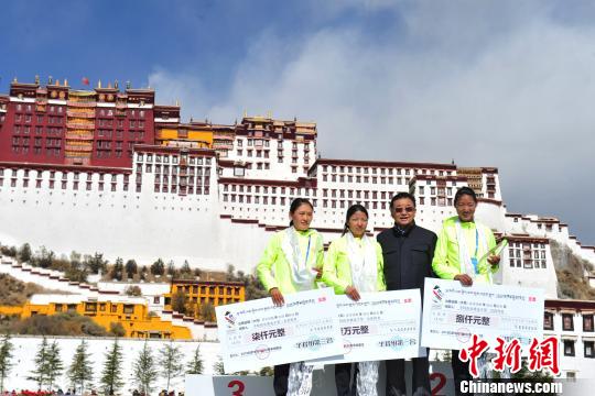 图为2018年11月11日,2018拉萨半程马拉松在拉萨开赛,获奖选手在布达拉宫前领奖。(资料图)。 张伟 摄