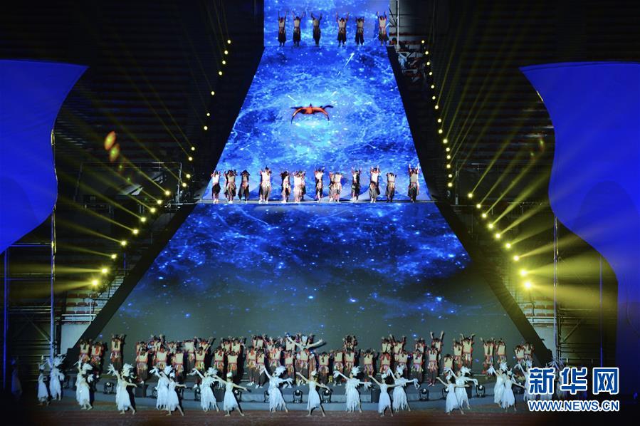 11月18日,广西壮族自治区第十四届运动会开幕式在百色市体育中心体育场举行。 这是开幕式上的文艺表演。(11月18日摄) 新华社记者 崔博文 摄