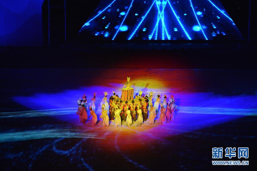 11月18日,广西壮族自治区第十四届运动会开幕式在百色市体育中心体育场举行。 这是开幕式上的文艺表演。(11月18日摄) 新华社记者 崔博文 摄