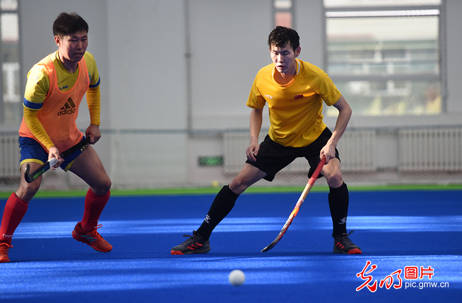为填补新中国竞技体育项目空白,1976年,中国第一支男子曲棍球队在莫旗组建。1978年,以莫旗籍教练和运动员为主组建了第一支中国男子曲棍球队,开始一系列出国访问和比赛交流活动。图为2020年8月4日,莫旗曲棍球队在莫旗曲棍球训练基地训练。(潘迪摄/光明图片)