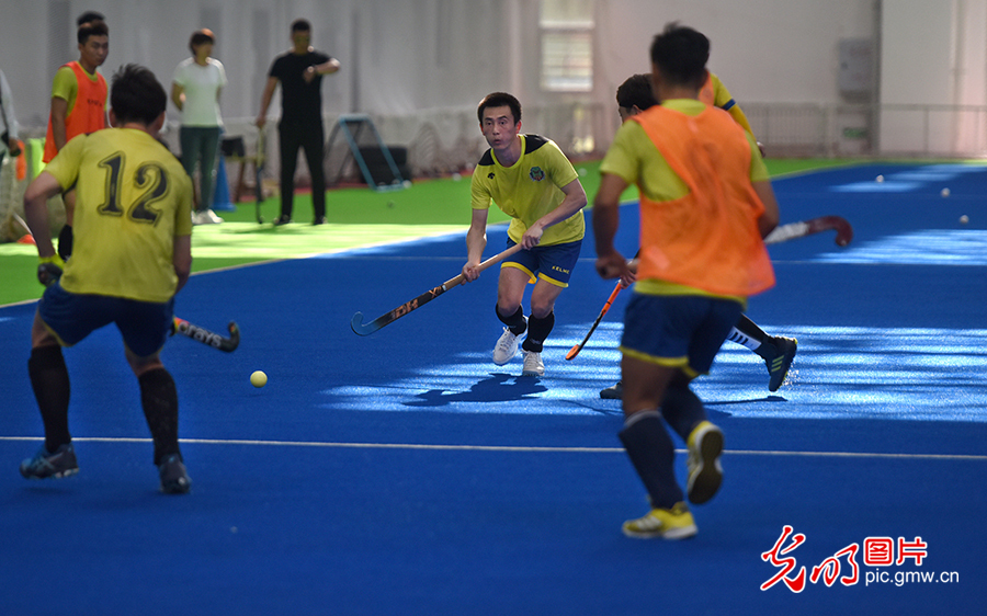 1979年,中国男子曲棍球队(其中有10名队员来自莫旗)参加了亚洲锦标赛预选赛获得第三名,同时取得决赛阶段入场券。1982年,中国男子曲棍球队在第一届亚洲杯上获得季军,为中国曲棍球事业发展开了个好头。图为2020年8月4日,莫旗曲棍球队在莫旗曲棍球训练基地训练。(潘迪摄/光明图片)