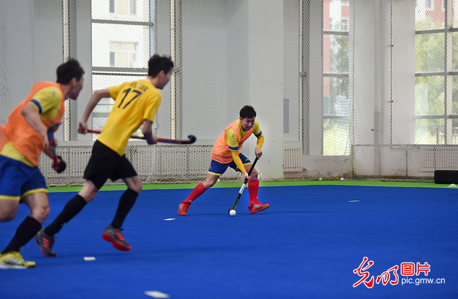 凭借良好的自然人文景观、优美的自然环境以及怡人的气候、浓厚的曲棍球文化氛围,莫旗已成为国际、国内运动队夏季训练的首选之地。图为2020年8月4日,莫旗曲棍球队在莫旗曲棍球训练基地训练。(潘迪摄/光明图片)