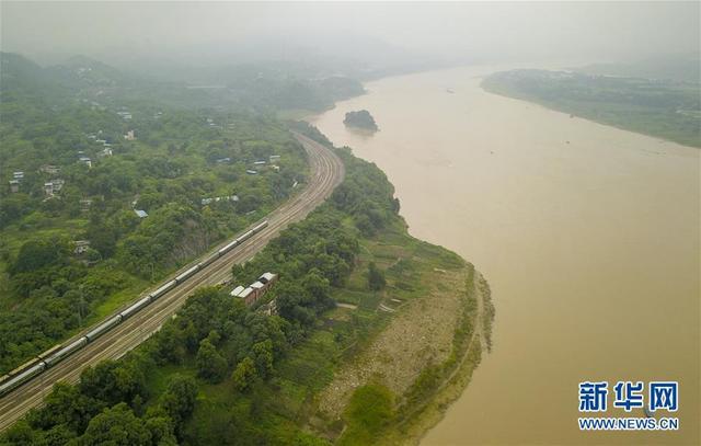 图为沿长江江岸而建的成渝铁路。新华社发