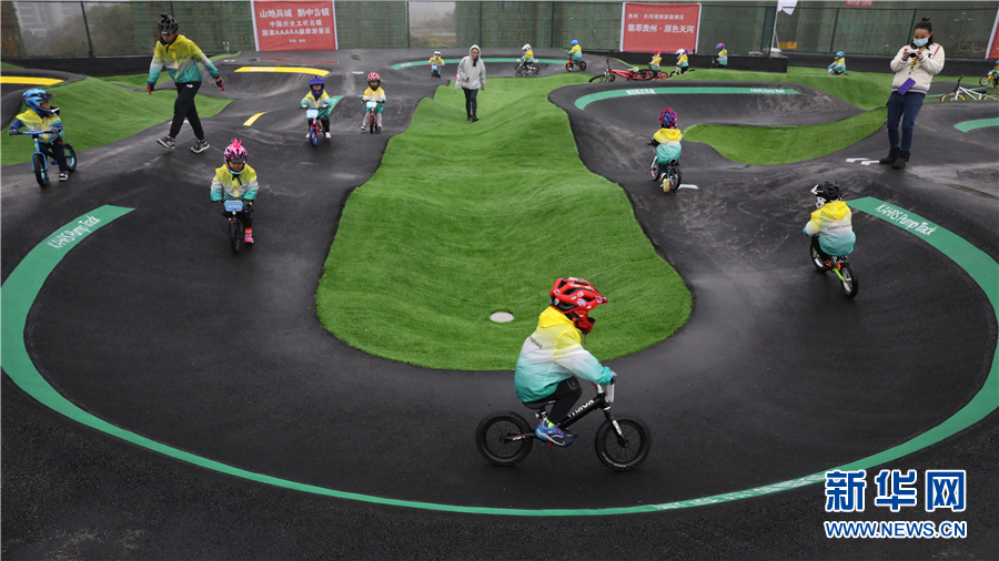 10月31日,孩子们在贵阳奥林匹克体育中心德国凯世泵道产业园内体验赛道。新华网 卢志佳 摄