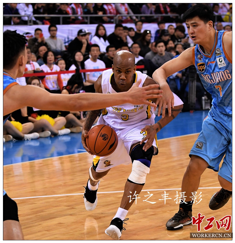 2018年2月3日晚,北京五棵松体育馆,CBA联赛第35轮比赛北京北控队以111比113负于新疆队。这很可能是马布里在这块有着特殊意义的场馆里进行的最后一场比赛,在这个场馆马布里率领北京首钢队夺得三座CBA联赛总冠军奖杯,为北京这座城市赢得了荣耀。这位美国篮球运动员已经获得了中国“绿卡”、北京荣誉市民以及北京城市钥匙,在北京五棵松体育馆广场拥有了马布里雕塑。马布里在北京篮球史留下了辉煌的一页。工人日报-中工网记者许之丰摄影报道