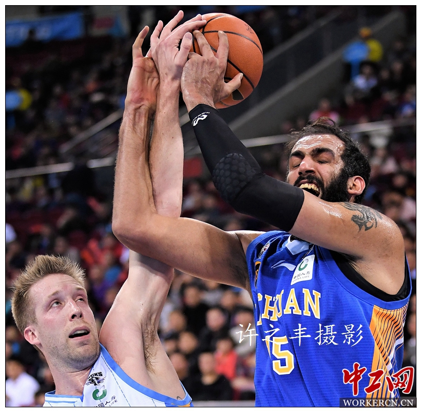 2018年2月4日晚,北京五棵松体育馆,CBA联赛第35轮比赛,北京首钢队主场以111比97战胜四川队。第35轮结束之后,北京首钢队提前3轮拿到了季后赛资格,而北京北控队退出季后赛的争夺。工人日报-中工网记者许之丰摄影报道