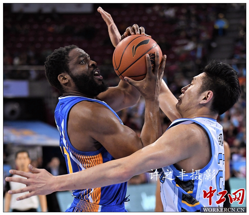 2018年2月4日晚,北京五棵松体育馆,CBA联赛第35轮比赛,北京首钢队主场以111比97战胜四川队。第35轮结束之后,北京首钢队提前3轮拿到了季后赛资格,而北京北控队退出季后赛的争夺。工人日报-中工网记者许之丰摄影报道