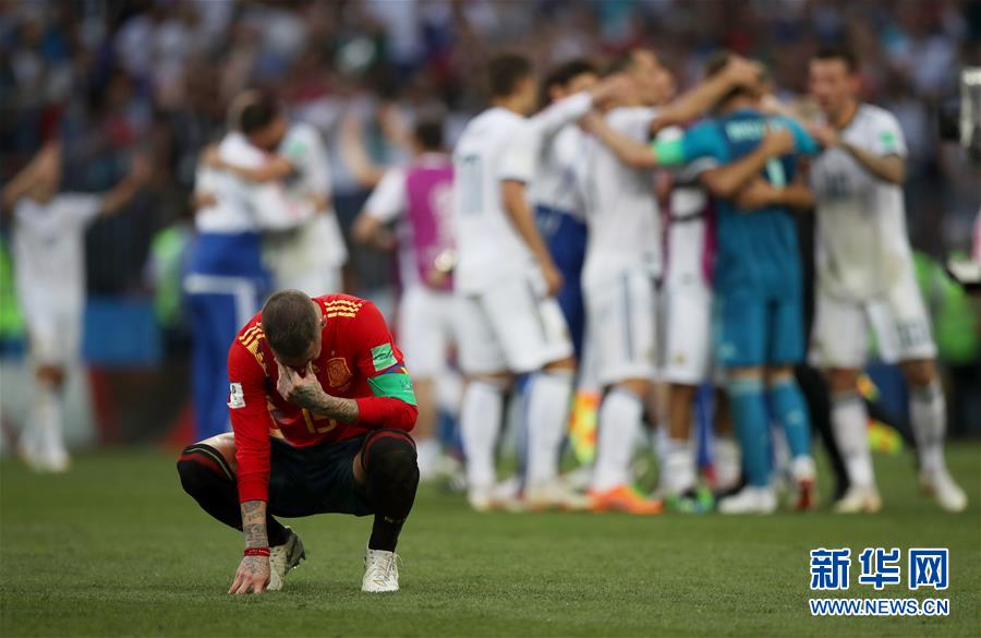 7月1日,西班牙队球员拉莫斯(前)在比赛后。新华社记者吴壮摄