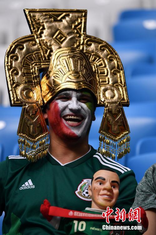 当地时间7月2日,2018俄罗斯世界杯足球赛八分之一决赛巴西与墨西哥的比赛在萨马拉举行。比赛开始前,双方的球迷纷纷亮相。 中新社记者 毛建军 摄