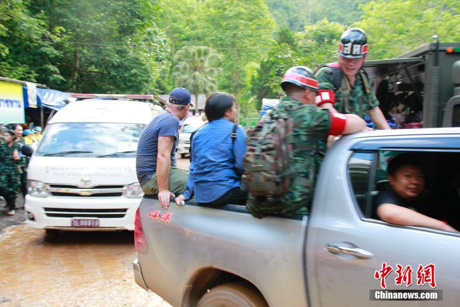 泰国足球队被困洞穴 运送物资车辆往来不息