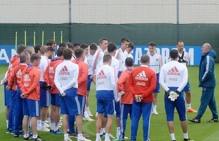 俄罗斯队训练备战1/4决赛 久巴、戈洛温神情轻松