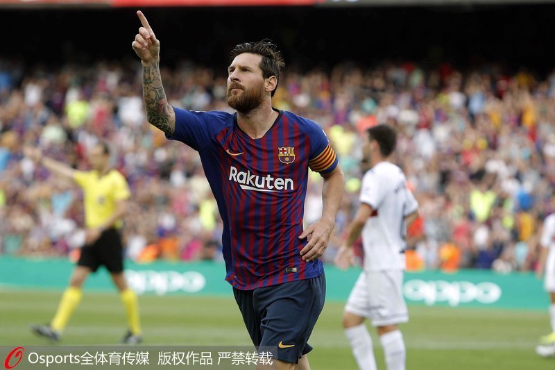 西甲-梅西苏神梅开二度 巴萨8-2狂胜韦斯卡夺3连胜