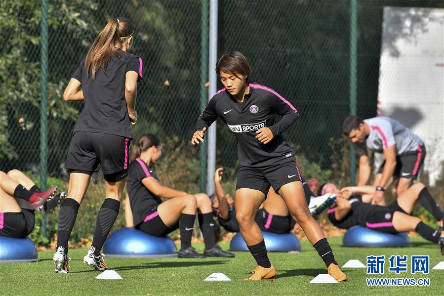 9月20日,巴黎圣日尔曼女足中国球员王霜(右)在法国卢韦谢纳参加球队训练。 新华社记者陈益宸摄