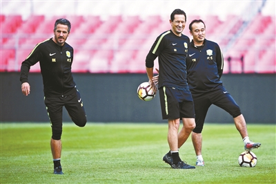 昨天赛前的踩场训练,国安队本赛季第一次进入工体内场,俱乐部总经理李明也特意来到场地内看望教练和球员们。由此可见国安上下非常重视这场比赛,先不考虑争不争冠的问题,在工体拿下上港再说。文/本报记者 张昆龙