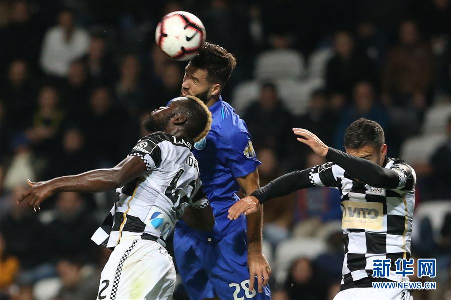 12月2日,波尔图队球员菲利普(中)与博阿维斯塔队球员伊德里斯(左)在比赛中拼抢。 当日,在葡萄牙波尔图市贝萨球场举行的2018-2019赛季葡萄牙足球超级联赛第11轮比赛中,波尔图队客场以1比0战胜博阿维斯塔。 新华社发(卡特丽娜·莫赖斯摄)