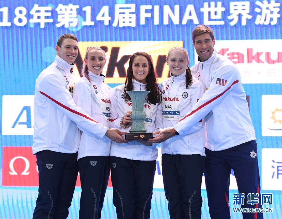 短池世锦赛:美国队男女混合4X50米自由泳接力夺冠
