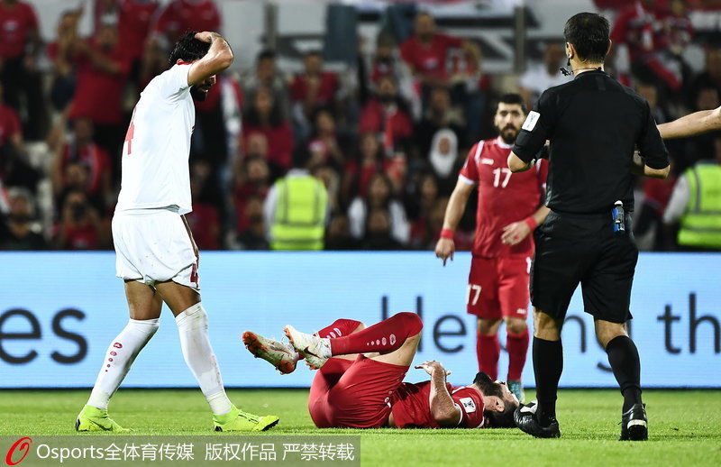 至此,本届亚洲杯的第一张红牌便诞生了,它属于巴勒斯塔球员萨列赫。