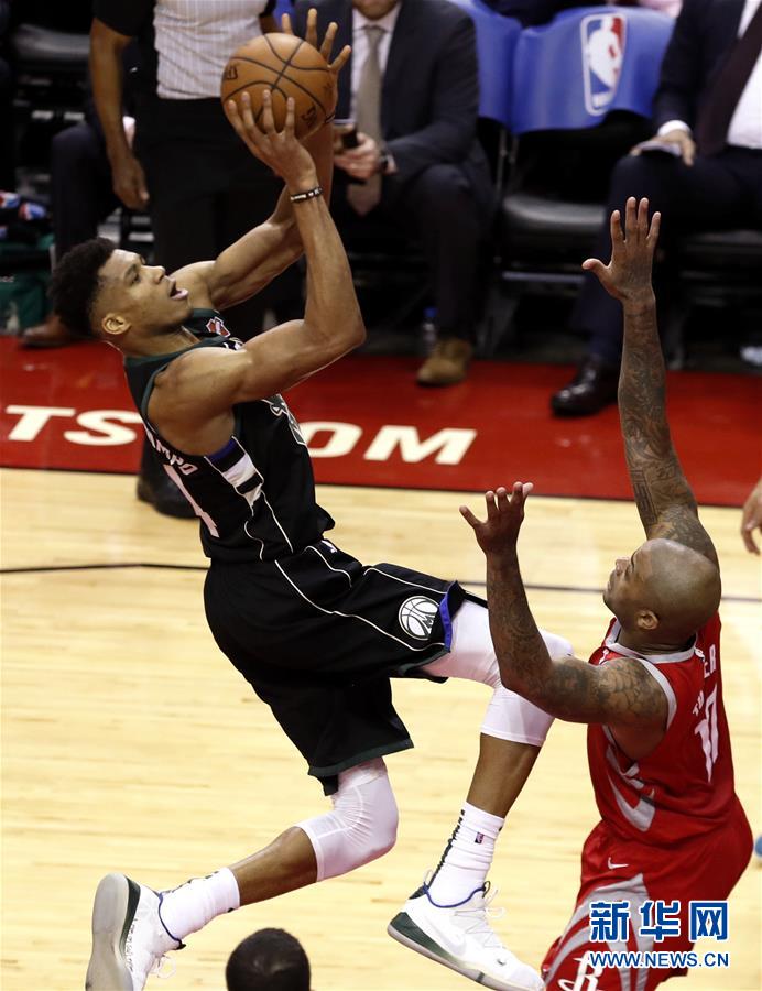 1月9日,雄鹿队球员安特托昆博(左)在比赛中进攻。 新华社发(宋穹摄)
