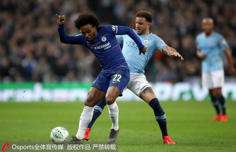 第66分钟,阿扎尔强突禁区左侧下底回传,坎特小禁区前射高。第89分钟,萨内接阿圭罗妙传,禁区线上抽射没能打正部位。随后,奥塔门迪铲倒威廉被黄牌警告。90分钟战罢,双方0-0战平。