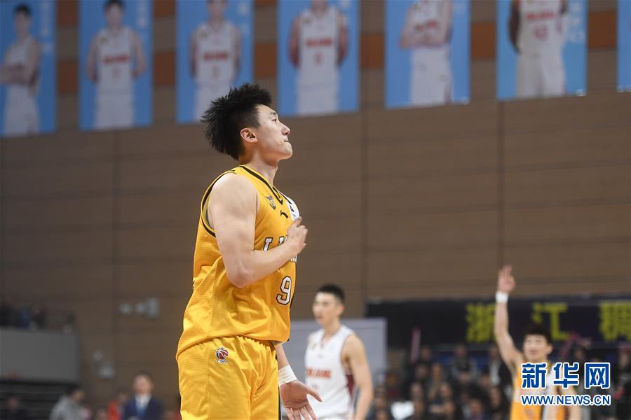 3月19日,浙江广厦控股队球员李京龙在比赛中庆祝投入三分球。 当日,在2018-2019赛季中国男子篮球职业联赛(CBA)季后赛12进8的第二回合比赛中,浙江广厦控股队在客场以113比110战胜浙江稠州银行队,将总比分扳为1比1。 新华社记者黄宗治摄