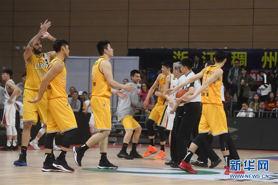 浙江广厦控股队球员在赛后庆祝获胜。新华社记者黄宗治摄
