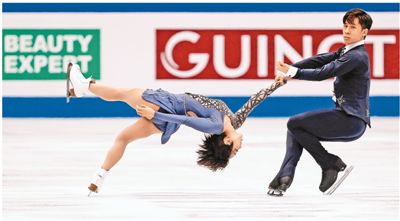 3月20日,隋文静(左)/韩聪在短节目比赛中。